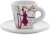 Set 4 tazzine espresso arte in porcellana bianca con decoro che riprende le opere di famosi artisti: Mirò, Kandisky, Haring, Matisse.