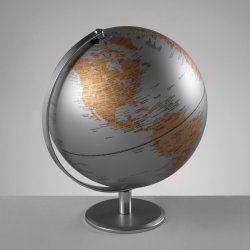 Mappamondo illuminato finitura metallizzata opaca con base in acciaio. Diam. 30 cm.